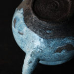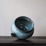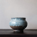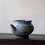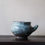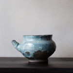 A spouted jar fired in Hoeryong or Myongchon County, North Hamgyong Province, during the late Joseon dynasty. Made from coarse-grained clay and coated with a thick straw ash glaze, this jar features a uniquely shaped spout and a large, sturdy crescent-shaped foot. Similar spouted vessels, adapted from jar shapes, can also be found in the southern part of the Korean peninsula, indicating that this type of vessel was well-suited to the local climate. It is suitable for use as a sake tokkuri or a flower vase.