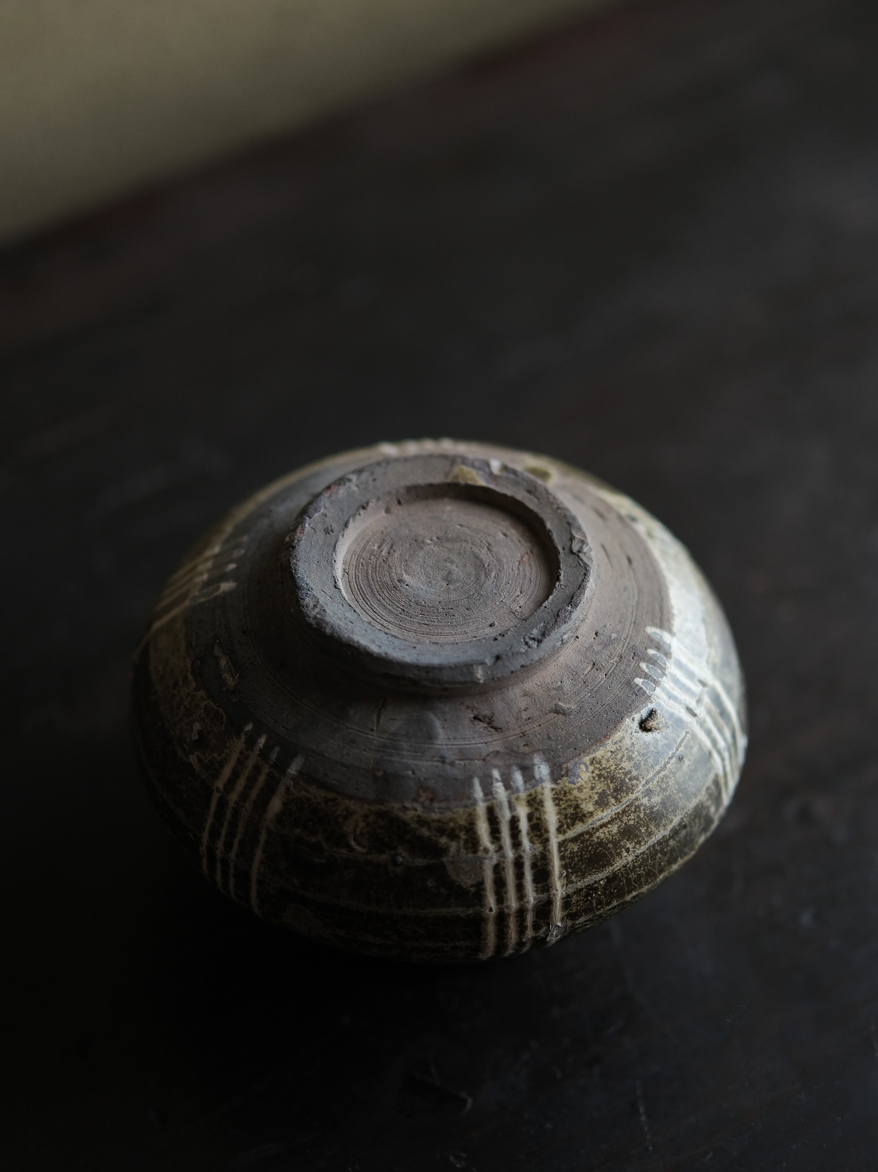 邛窯は唐代から質の高い副葬品を数多く焼いたが、時代が下るにつれ本作のような日用器の比重が増した。本品はその末期に位置づけられる作例で、軟質胎のために良好な状態で残るものは稀。枯れた黒褐釉に白泥が映える、古蜀の遺風を伝える一作。