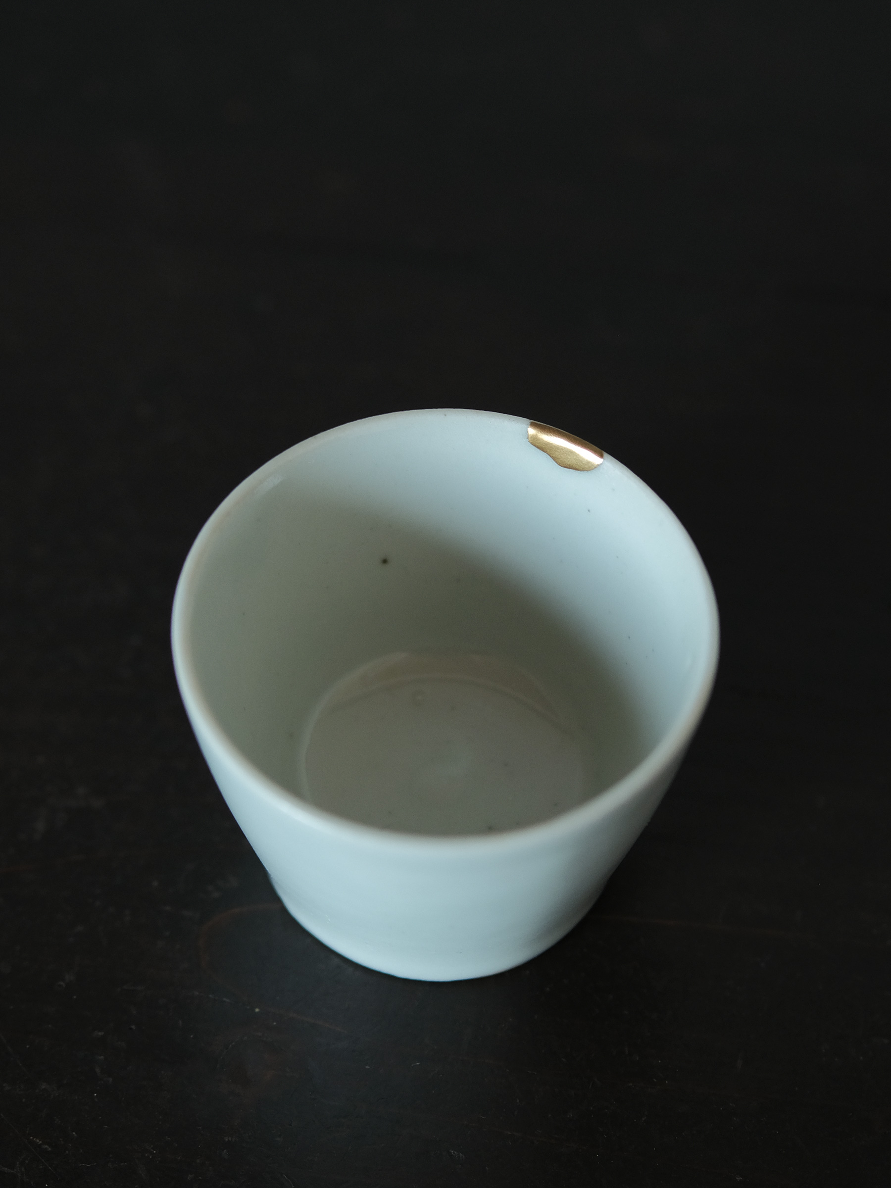 口縁の削げに金繕いを施した。その他、窯傷以外に目立った瑕疵は無く、状態良好。